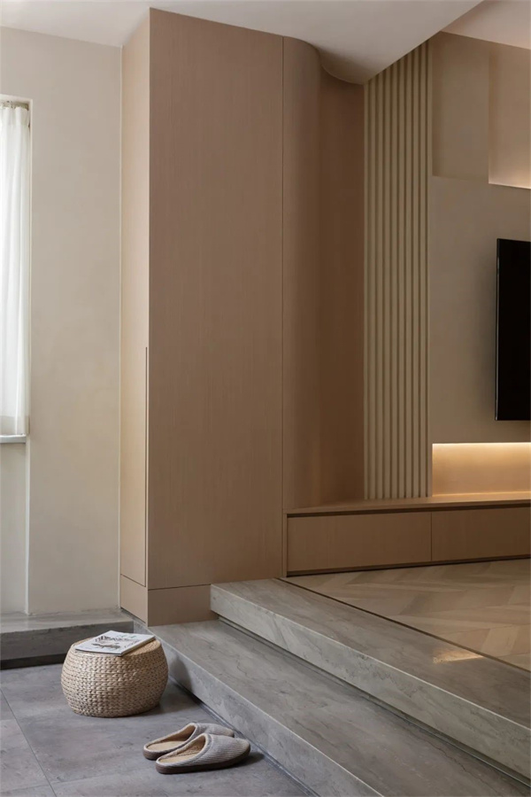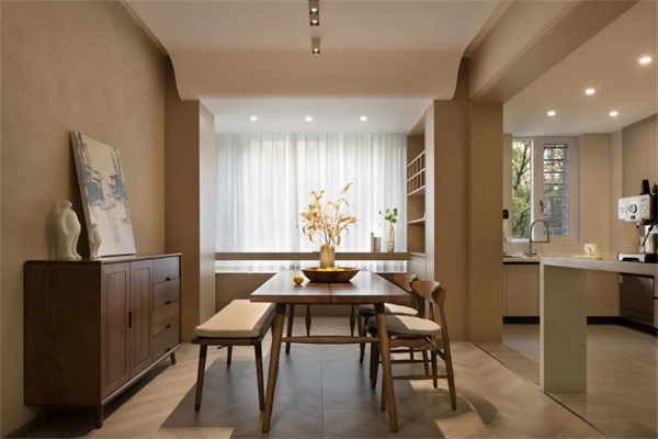 侘寂風格強調自然樸素、簡約淡雅的美感。踏入這方空間,一股淡雅的侘寂之美悠然鋪展,每處細節都透露著對生活本質的追求,仿佛步入一場關于簡約、自然與禪意的居住藝術之旅。