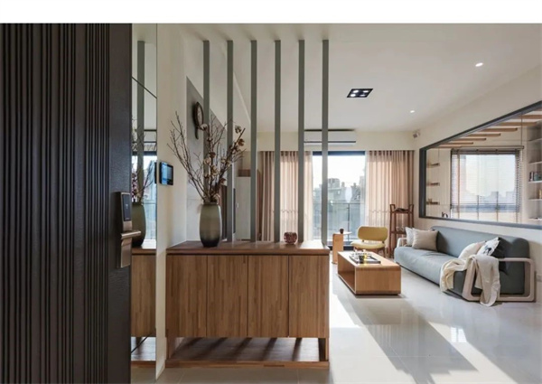 軟裝配飾方面,精心挑選的舒適家具和簡潔的裝飾布置,使客廳更顯時尚端莊,整體設計風格簡約而不簡單,完美地融合了現代感和舒適感,讓整個空間宜居又美觀。
