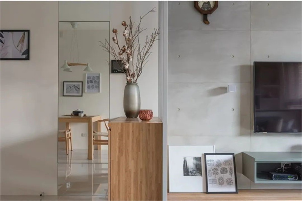 餐廳空間與客廳相連貫,整體寬度充足,居中擺放一套簡約舒適的木質餐桌椅,讓用餐氛圍輕松閑適。一旁的餐邊柜設計,兼具了裝飾與收納功能,讓空間更加整潔協調。