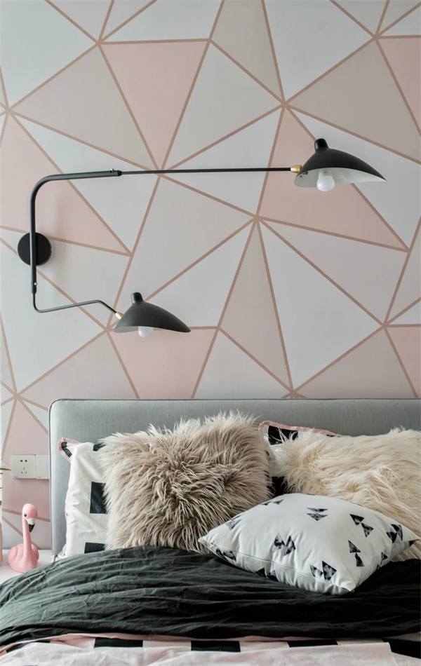 主臥背景墻采用豐富的拼色設計,原木地板、暖色床品、軟裝掛飾完美搭配,營造出寧靜淡雅的睡眠環(huán)境。在簡約溫暖舒適空間中,床頭的小臺燈在夜晚照亮屬于自己的小天地。