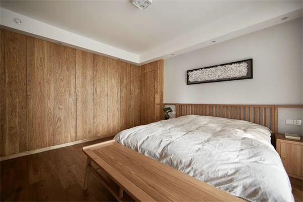 原木風(fēng)的臥室注重舒適感,床的靠背和床頭柜巧妙地融為一體,呈現(xiàn)出獨特的線條美感。白色床品搭配原木色家具,打造寧靜的睡眠環(huán)境,營造出現(xiàn)代舒適的居家氛圍。