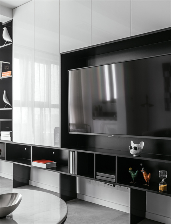 本案設(shè)計師通過簡潔的線條、純凈的色彩以及精致的家具選擇,打造出一個既時尚又實(shí)用的居住空間。黑、白和灰的中性色調(diào)成為主宰整個裝修的基調(diào),打造出一種干凈、明亮、寬敞的氛圍。