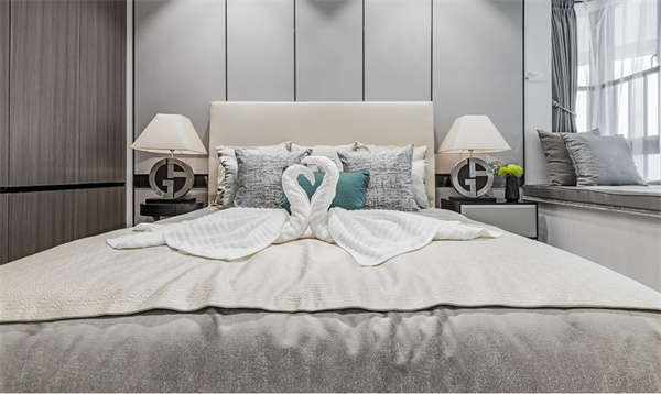 次臥設計同樣精致考究,精選舒適柔軟的床品和簡約裝飾畫,營造出輕松愜意的睡眠空間。柔和的色調(diào)搭配,讓人感到寧靜和舒緩,為身心帶來最佳的休息體驗。