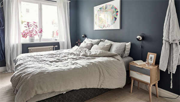 主臥打破傳統的沉悶感,選擇明亮的白色和淡雅的藍色組合,搭配原木色的床頭柜和家具,營造出輕松寧靜的氛圍。軟裝布置由清新的純棉材質構成,窗簾選擇透光的材質,每天清晨都能被溫柔的陽光喚醒,開啟美好的一天。